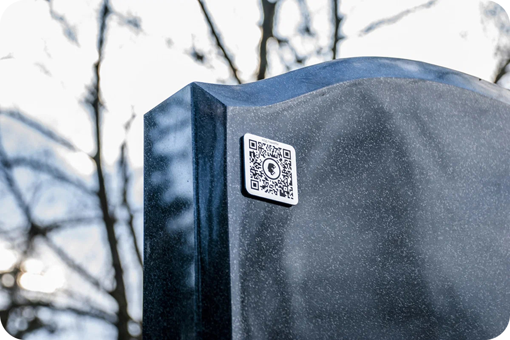 Посетители сканируют код смартфоном и получают доступ к истории жизни человека. Важно: содержимое должно быть модерационно и уважительным. QR-код защищают прозрачным покрытием.